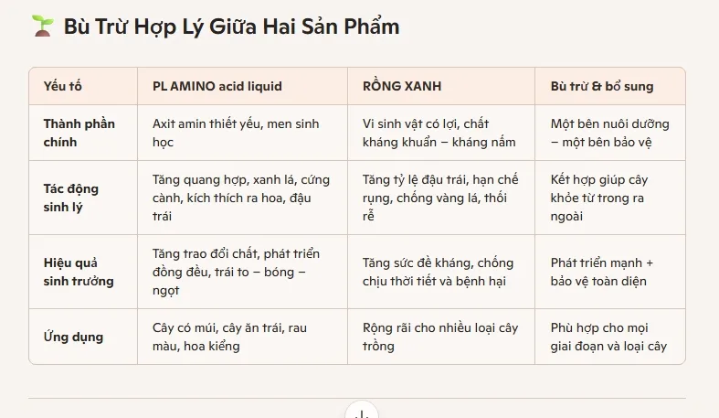 • Tăng năng suất & chất lượng: PROMIN AMINO STAR giúp cây phát triển mạnh, ra hoa đồng loạt, trái đẹp. RỒNG XANH bảo vệ cây khỏi bệnh, giúp trái giữ được lâu và không bị rụng.