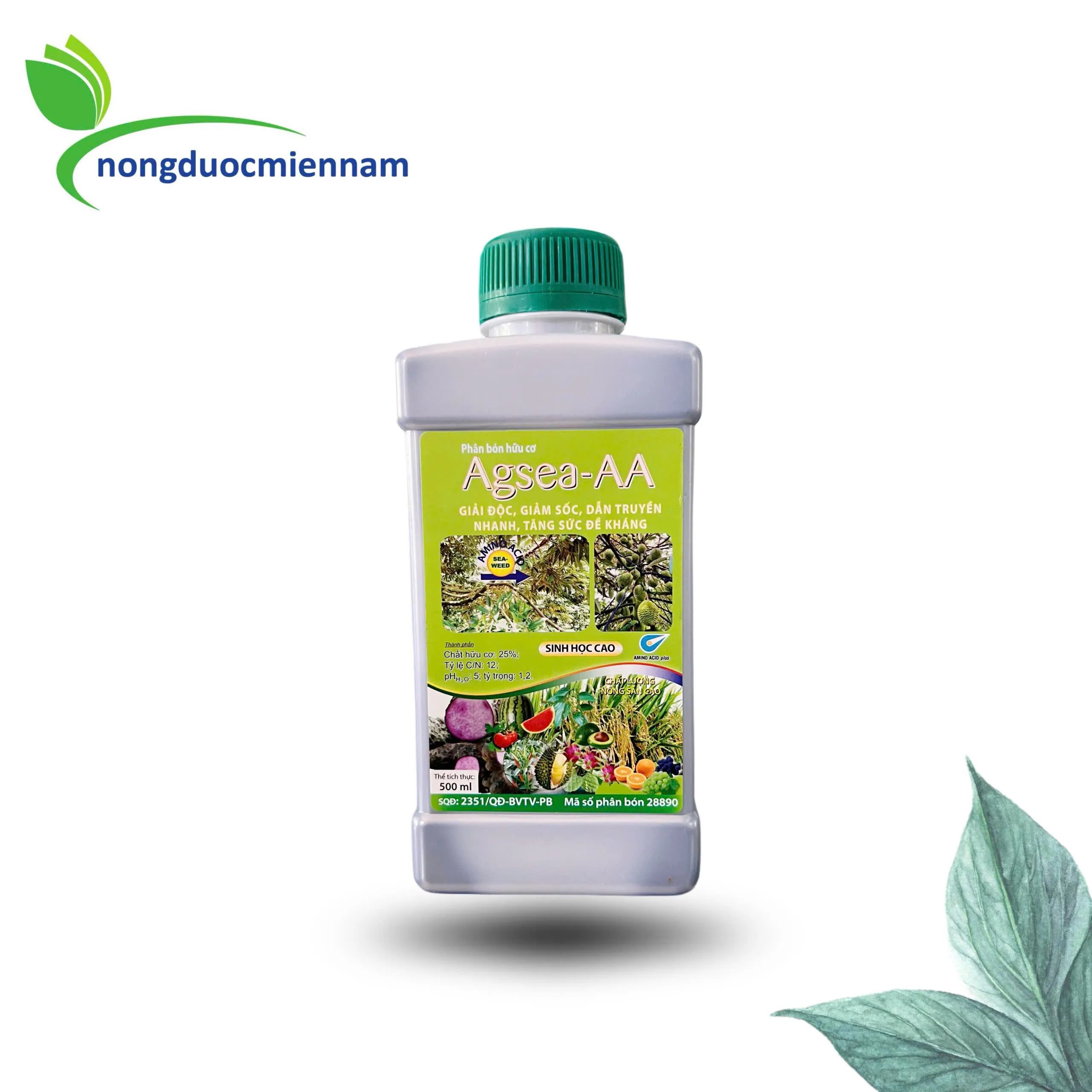 – Agsea –AA chiết xuất từ tảo biển kết hợp với axit amin tự do nên có khả năng hấp thu và dẫn truyền nhanh trong thân cây sau khi sử dụng ( 2-3 giờ ). Chứa các chất điều hòa sinh trưởng tự nhiên ( Auxin, Cytokinin, Gibberellin,…) có hoạt tính sinh học cao.